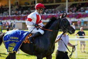 Wenn es mal läuft, dann läuft es richtig. Sibylle Vogt hat nach den Treffern mit Santagada und Freigeist mit Narokan einen Dreier beim Iffezheimer Mittwoch-Renntag…